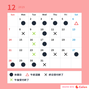 平素より壱をご利用頂き誠にありがとうございます。12月の休業日・ご予約状況をお知らせします。よろしくお願いいたします。