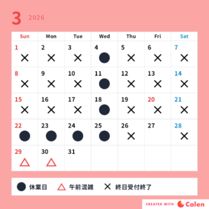 平素より壱をご利用頂き誠にありがとうございます。3月の休業日・ご予約状況をお知らせします。よろしくお願いいたします。
